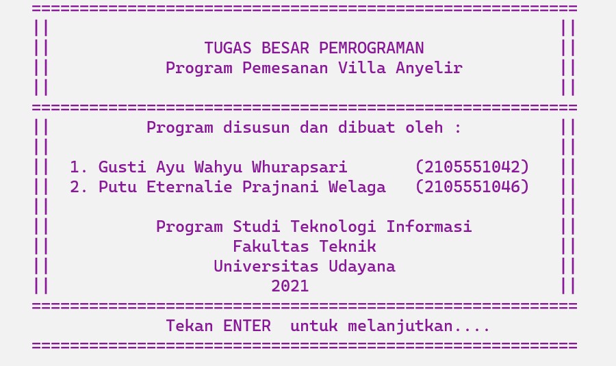 Anyelir Villa's Program : Program Pemesanan Villa (Bahasa C)